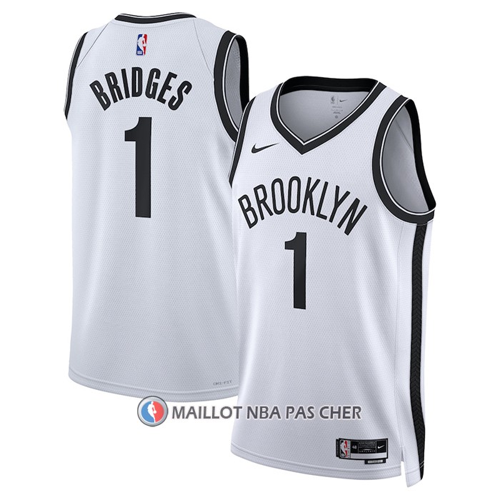 Maillot Brooklyn Nets Mikal Bridges NO 1 Association 2022-23 Blanc