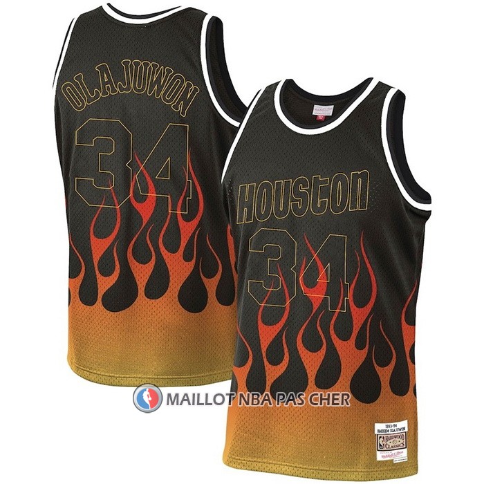 Maillot Houston Rockets Hakeem Olajuwon Flames Noir