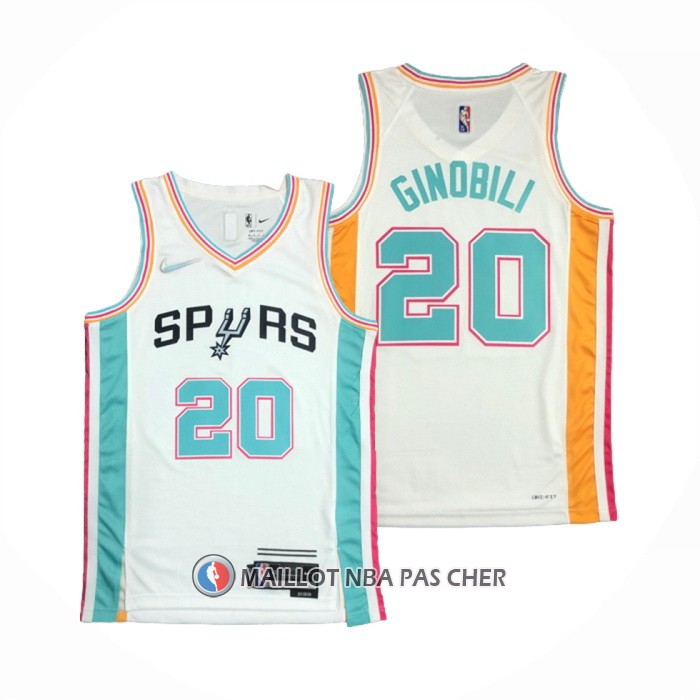 Accueil ::  Equipes NBA ::  San Antonio Spurs ::  Maillot San Antonio Spurs Manu Ginobili NO 20 Ville 2021-22 Blanc