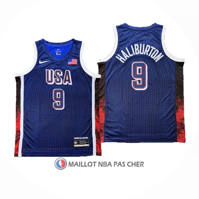 Accueil ::  Classique NBA ::  USA 2024 ::  Maillot USA 2024 Tyrese Haliburton NO 9 Jeux Olympiques Bleu