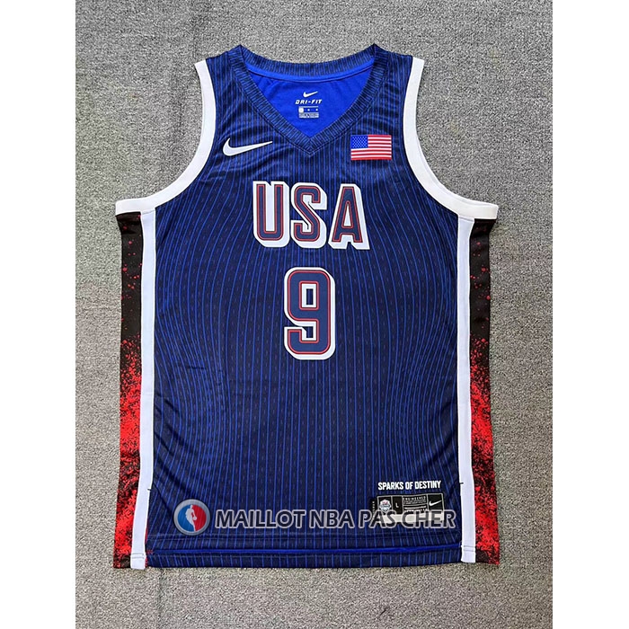 • Maillot USA 2024 Tyrese Haliburton NO 9 Jeux Olympiques Bleu